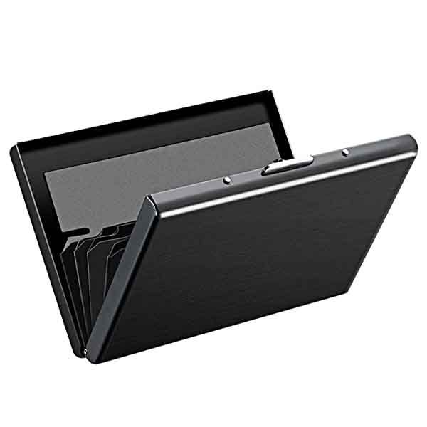 Storite 6 Slots RFID Blocking Metal Credit Card Holder Wallet for Men & Women(Shiny Black,9.5 x 6.5 x 1.3 cm )